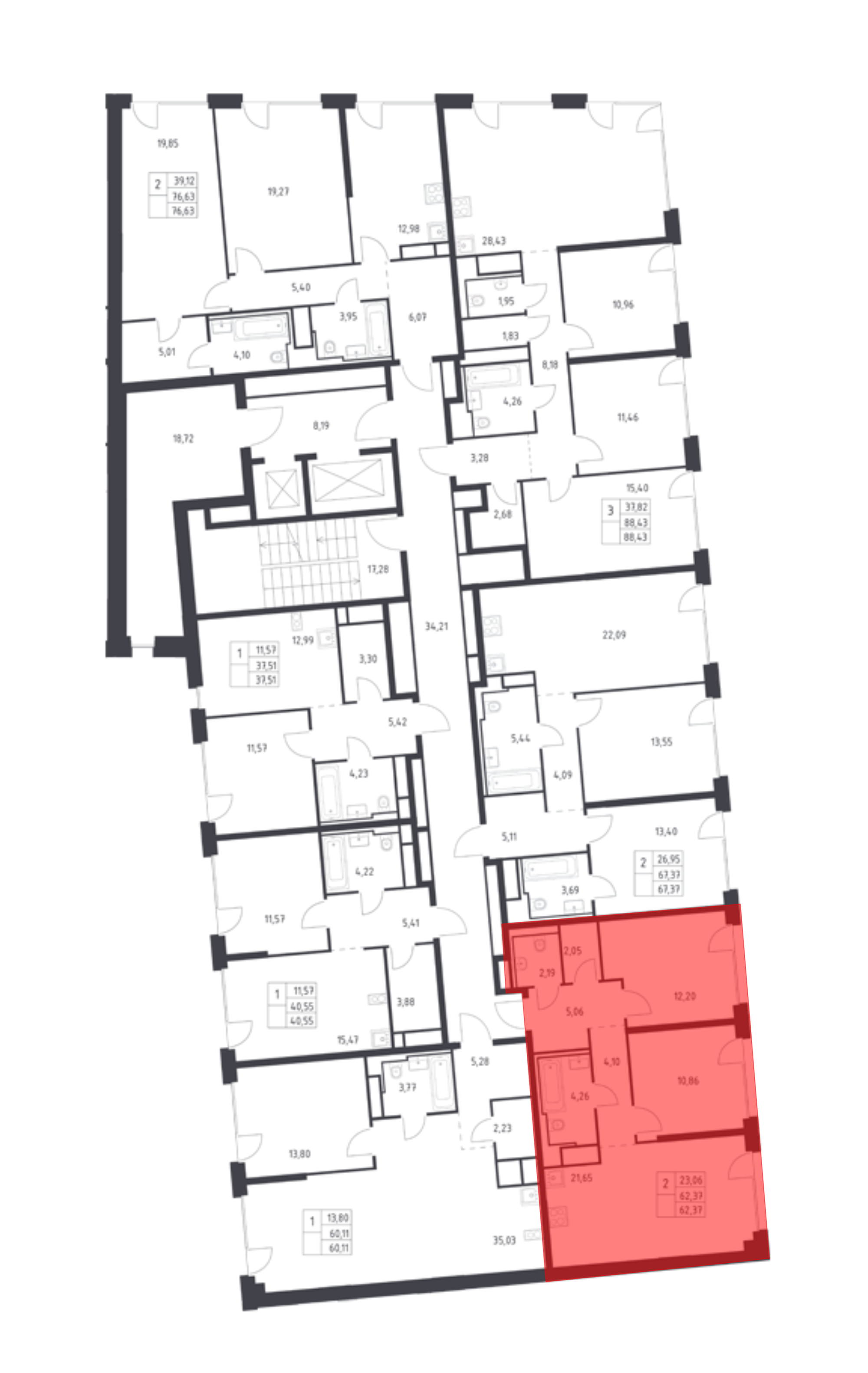 24 600 013 ₽3-к.квартира, 62.59 м², 11 эт.