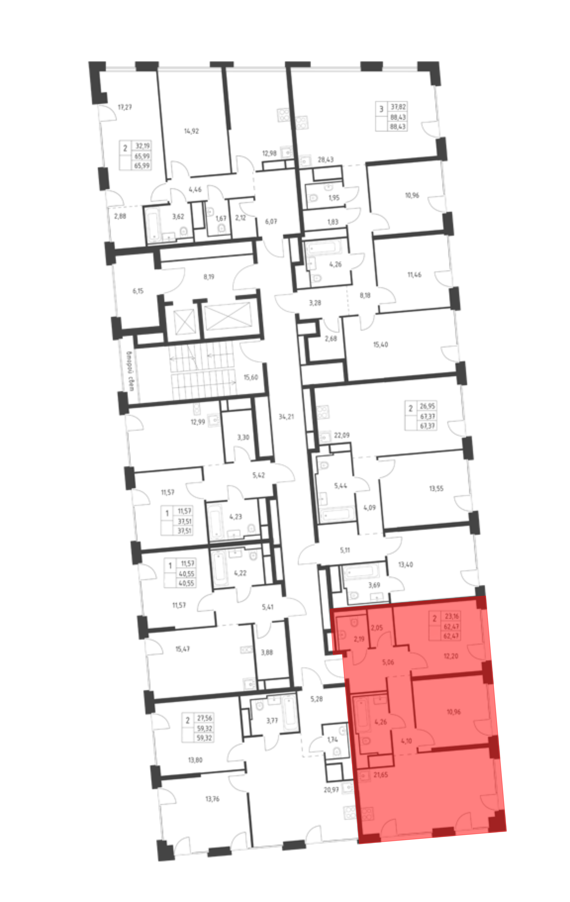 22 439 713 ₽2-к.квартира, 62.51 м², 4 эт.