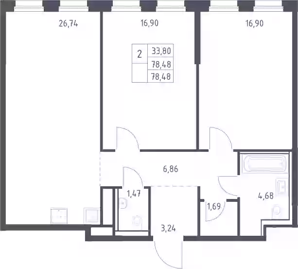 25 703 374 ₽3-к.квартира, 67.79 м², 6 эт.