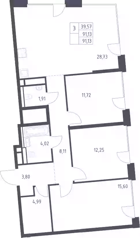 33 589 749 ₽4-к.квартира, 90.97 м², 12 эт.
