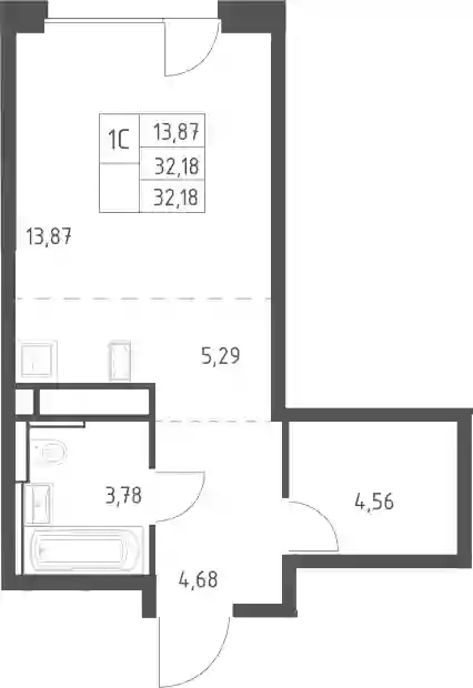 Студия, 32.3 м², 2 эт. в ЖК Графика на воде Корпус 5