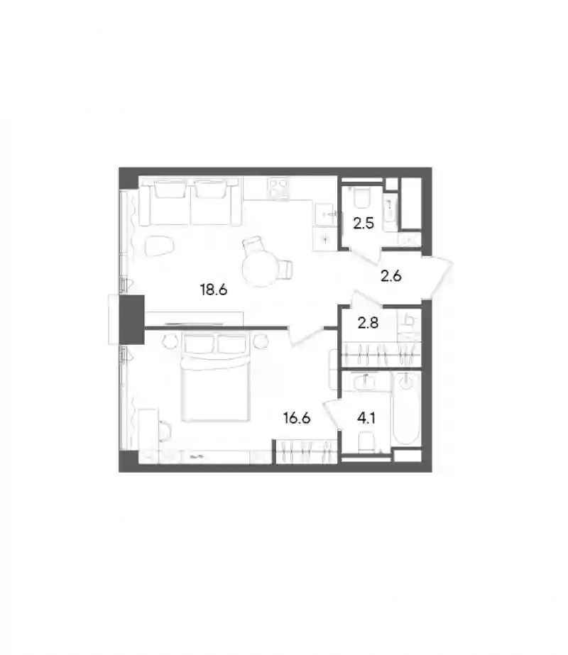 Планировочная линейка включает студии и квартиры от 1 до 4 спален, площадью от 31 до 176 кв. м, а также 2-уровневые пентхаусы от 118 до 156 кв. м с террасами. Все квартиры передаются без стен, в формате Shell&Core, с возможностью свободной планировки. В большинстве лотов предусмотрены мастер-спальни, балконы, анфиладные и атриумные планировки. Есть квартиры с угловым остеклением и приватными зонами.