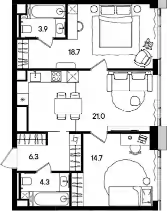 В жилом комплексе представлены планировки как классического формата, так и уникальные лоты: двухуровневые квартиры, просторные угловые кухни-столовые, планировки с мастер-спальней, студии с балконами и квартиры с террасами. Есть планировки, в которых предусмотрено окно в ванной комнате. А также видовые квартиры с видами на парк «Зеленая река» и Москва-Сити. Все квартиры сдаются без отделки, с высокими потолками от 3 метров и увеличенными окнами.