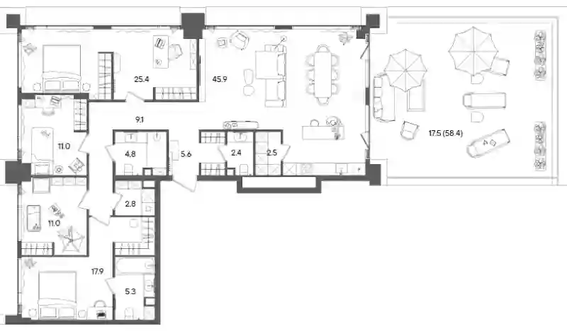 5+к.квартира, 143.6 м², 42 эт. в ЖК Grain Корпус Башня А