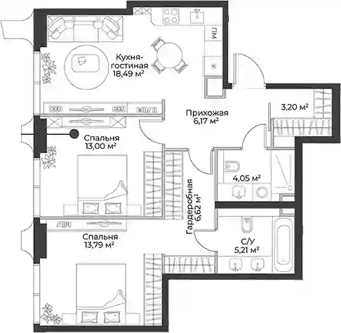 49 579 140 ₽3-к.квартира, 66.3 м², 23 эт.