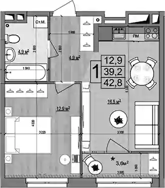1 ₽2-к.квартира, 43.1 м², 3 эт.