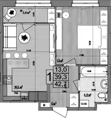 1 ₽2-к.квартира, 39.9 м², 13 эт.