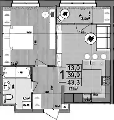 7 187 800 ₽2-к.квартира, 43.3 м², 4 эт.