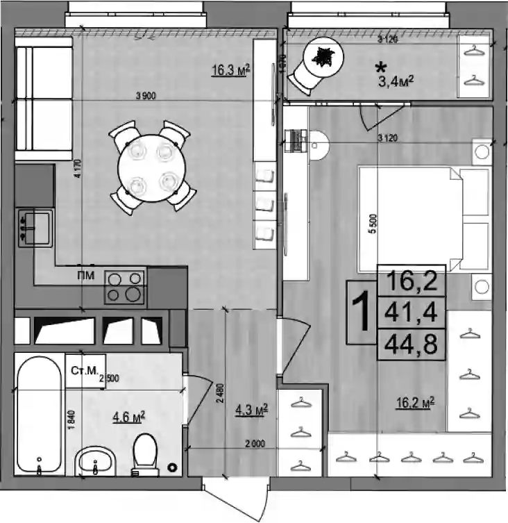 7 714 900 ₽2-к.квартира, 41.4 м², 15 эт.