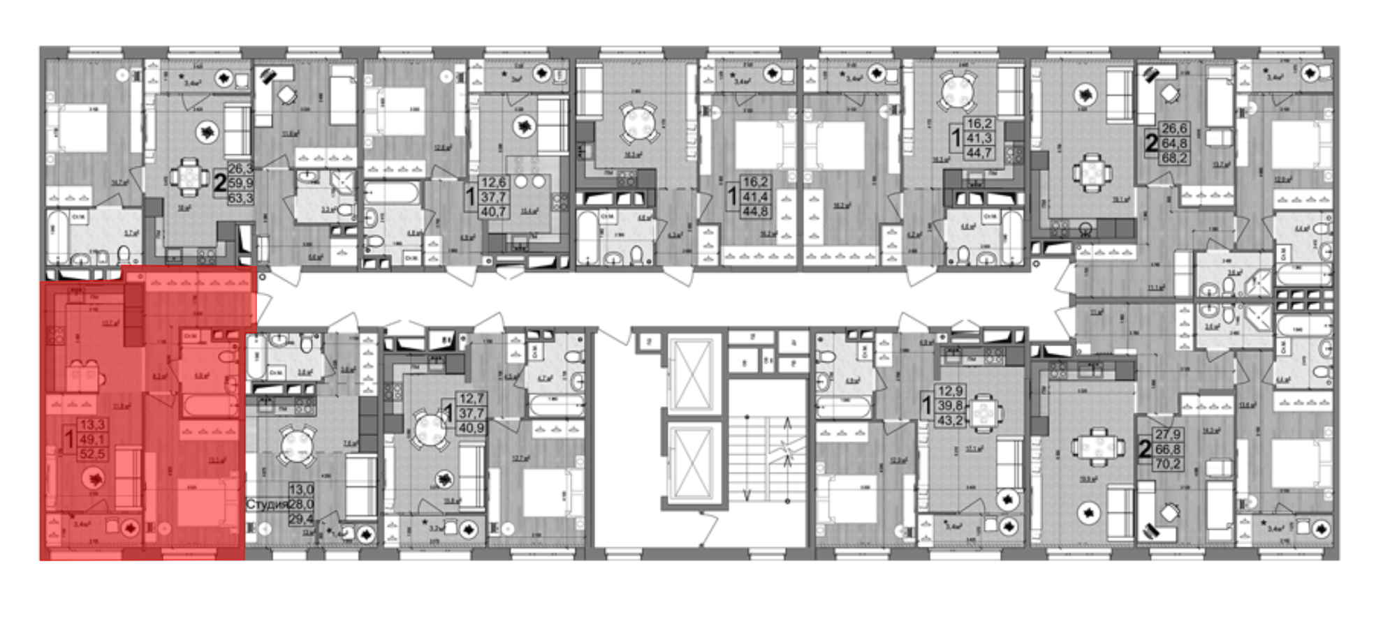 В проекте представлены студии и квартиры с 1–3 спальнями, также доступны опции с европланировками. В помещениях предусмотрены потолки высотой от 2,8 до 3,1 метра и увеличенные окна с защитой от ультрафиолета и теплопотерь. Квартиры спроектированы с упором на комфортное и энергоэффективное проживание в течение всего года.