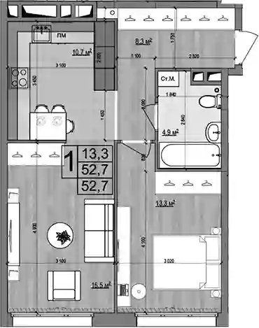 52.7 м2