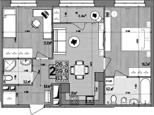 59.9 м2