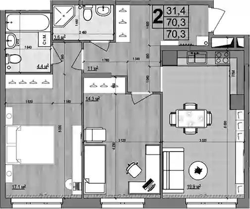 70.3 м2