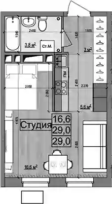 5 761 800 ₽Студия, 28.3 м², 13 эт.