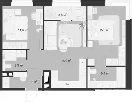 11 420 200 ₽3-к.квартира, 61.8 м², 15 эт.