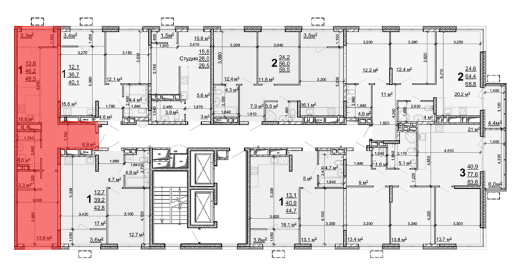 3-к.квартира, 56 м², 18 эт.