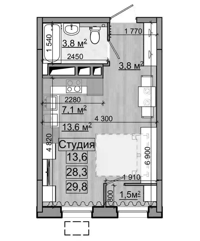 Студия, 28.3 м², 13 эт. в ЖК Гранд Комфорт Корпус 1