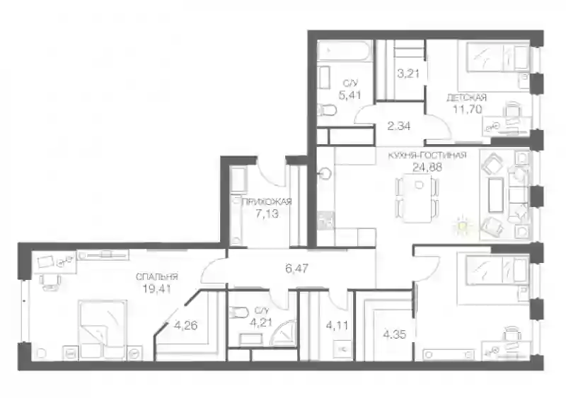 4-к.квартира, 111.78 м², 6 эт. в ЖК HEADLINER Корпус 6