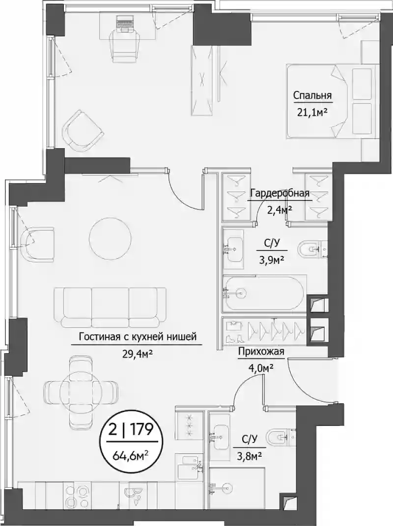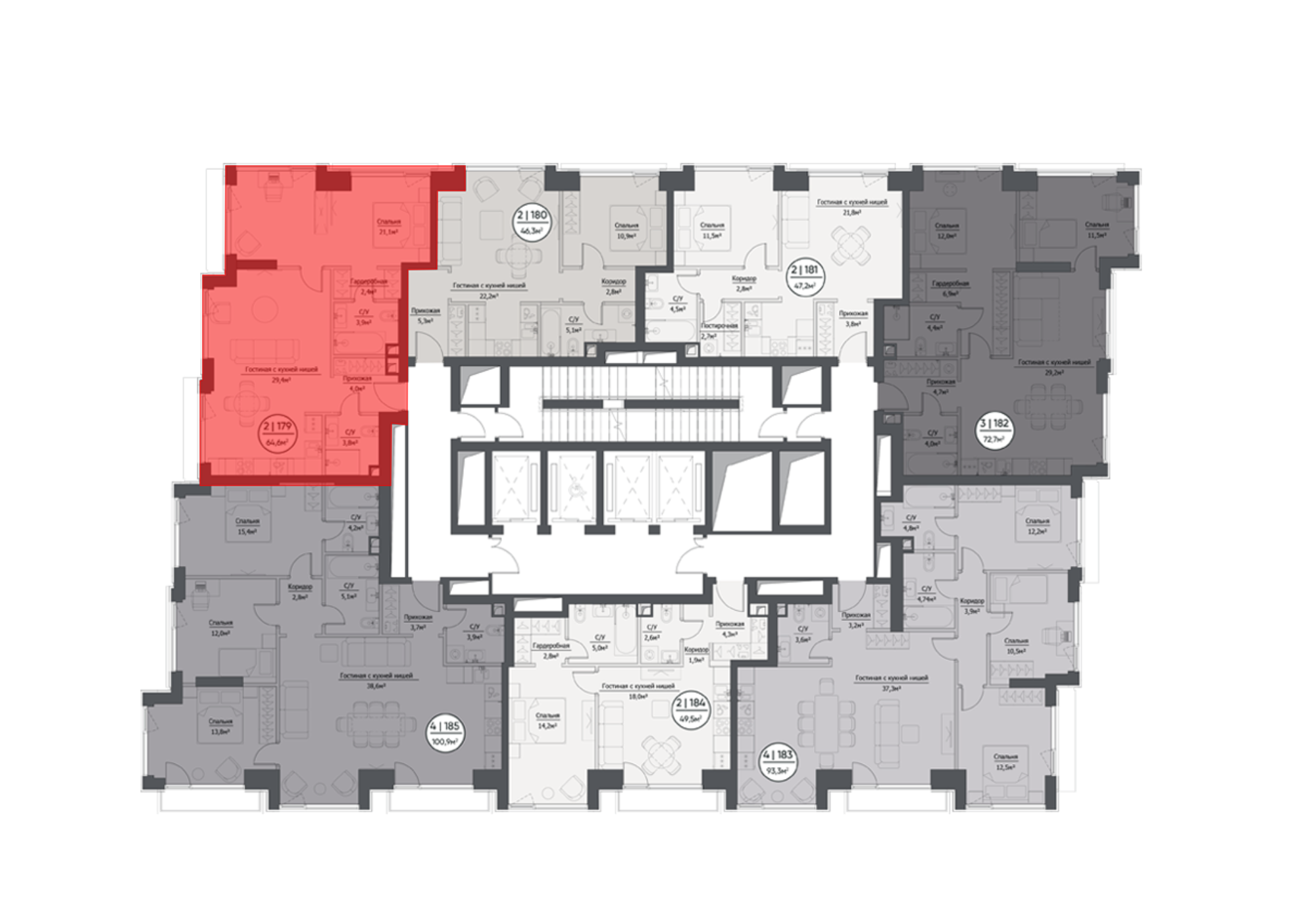 2-к.квартира, 64.84 м², 25 эт. в ЖК Hide Корпус RiverSide