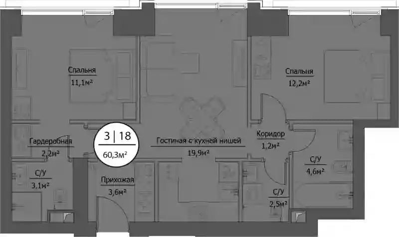 3-к.квартира, 60.43 м², 4 эт. в ЖК Hide Корпус RiverSide
