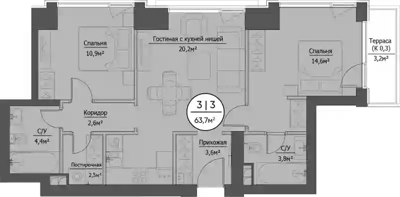 49 263 600 ₽3-к.квартира, 67.3 м², 3 эт.