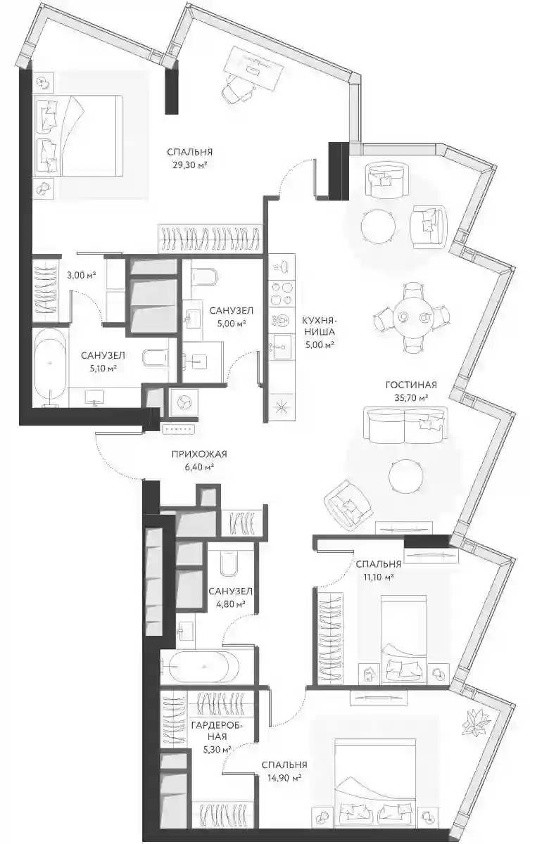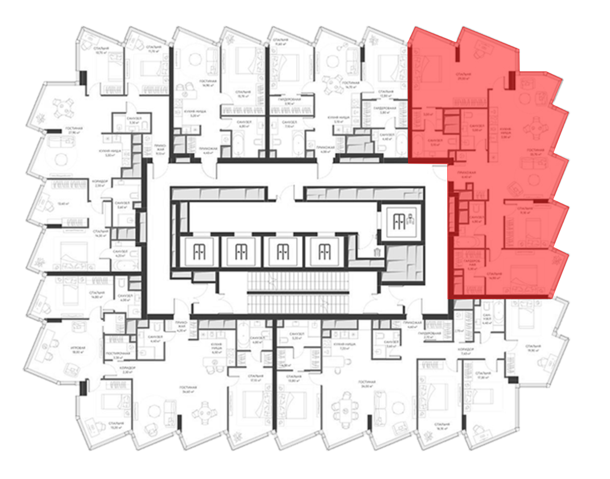 4-к.квартира, 126 м², 31 эт. в ЖК hideOUT Корпус 2