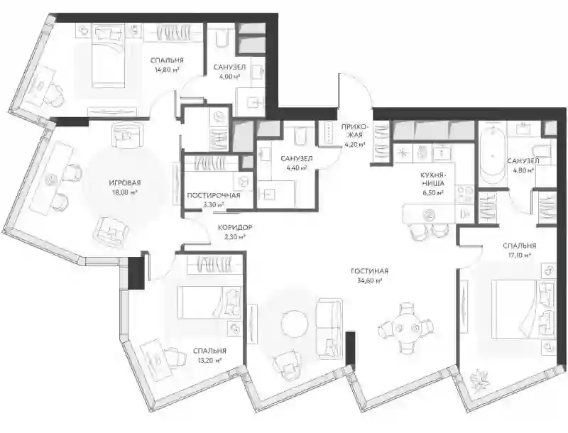 5+к.квартира, 129.1 м², 30 эт. в ЖК hideOUT Корпус 2