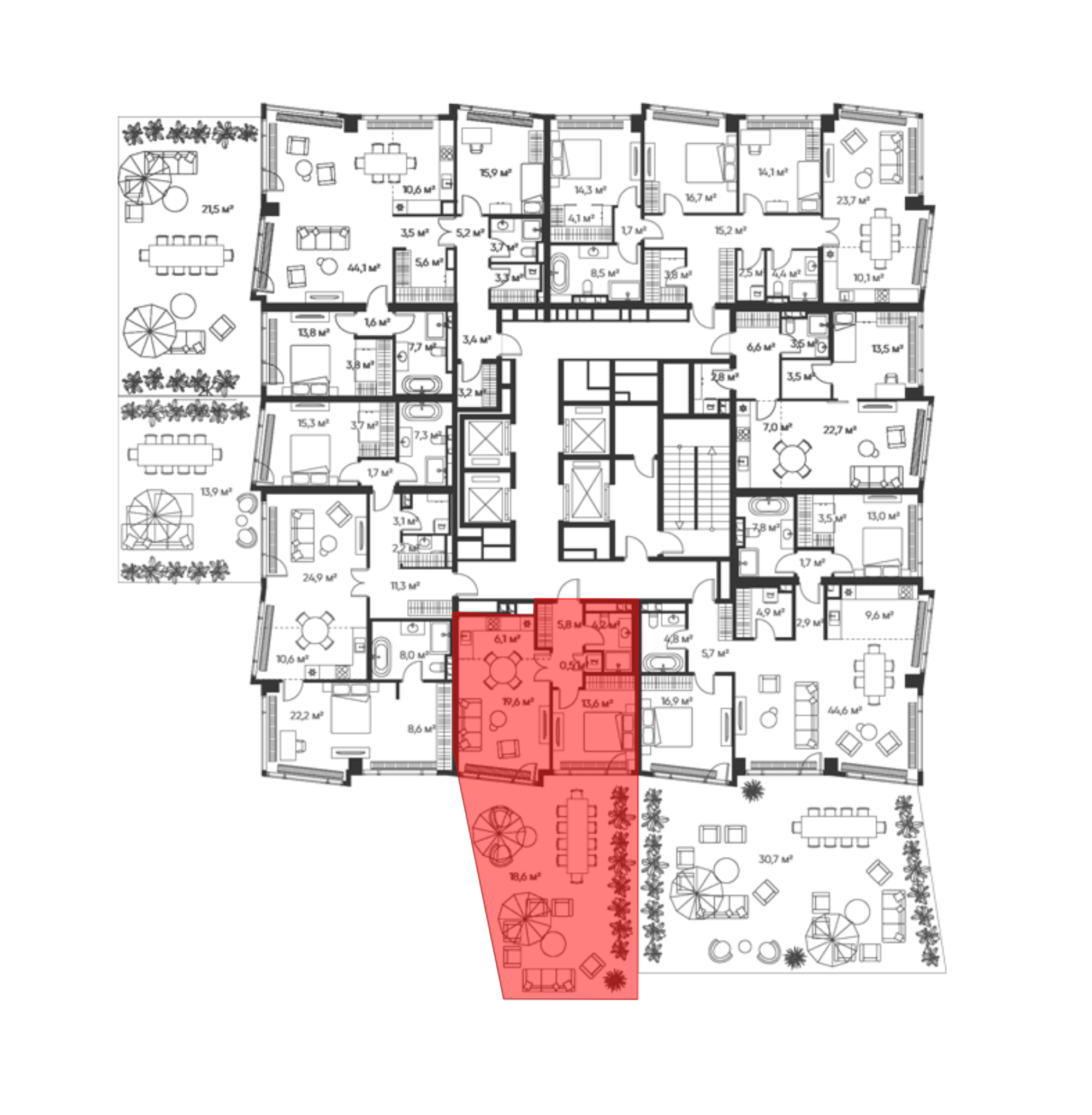Площадь квартир и пентхаусов в проекте «High life» составляет от 36 до 210 кв. метров, а высокие потолки создают атмосферу легкости. Квартиры представлены с панорамными окнами и стеклянными эркерами.