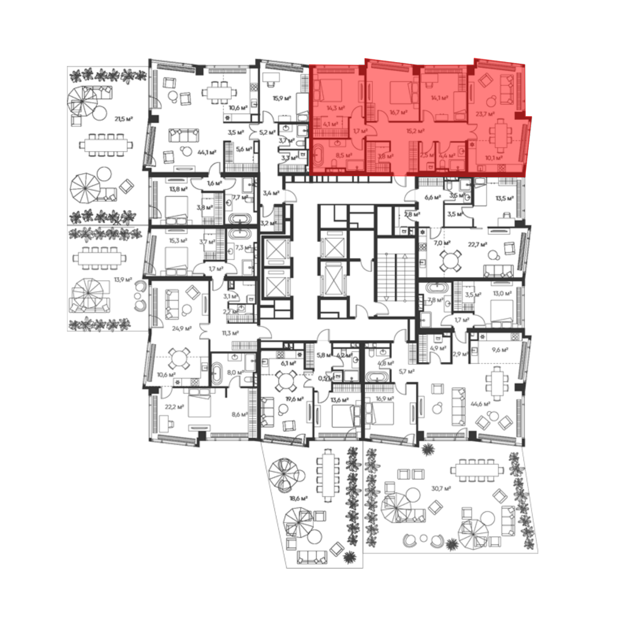 Площадь квартир и пентхаусов в проекте «High life» составляет от 36 до 210 кв. метров, а высокие потолки создают атмосферу легкости. Квартиры представлены с панорамными окнами и стеклянными эркерами.