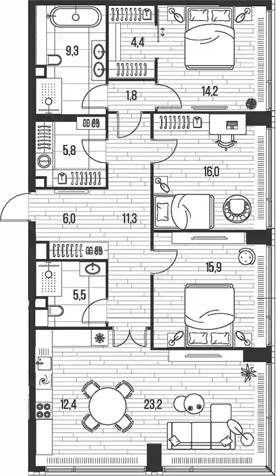 4-к.квартира, 125.8 м², 13 эт. в ЖК High Life Корпус 4 Sense Tower
