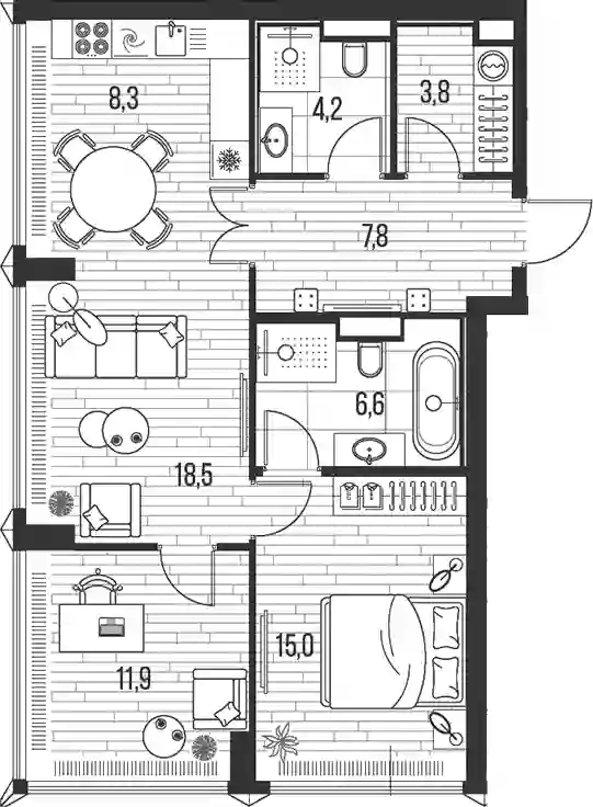 В ЖК «SHIFT» предложен широкий выбор планировок 1, 2, 3- комнатных квартир с высокими потолками от 3 метров и панорамными окнами, а также эксклюзивные лоты — квартиры с террасами и просторные пентхаусы. В наличии квартиры, как без отделки, так и с чистовой дизайнерской отделкой. Из окон открываются виды на Воробьевы горы, Нескучный сад, Москва-сити и главное здание МГУ.