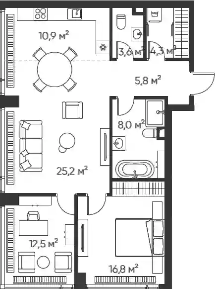 Площадь квартир и пентхаусов в проекте «High life» составляет от 36 до 210 кв. метров, а высокие потолки создают атмосферу легкости. Квартиры представлены с панорамными окнами и стеклянными эркерами.