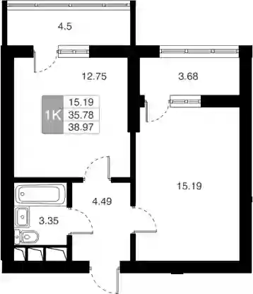 11 270 124 ₽1-к.квартира, 35.78 м², 14 эт.