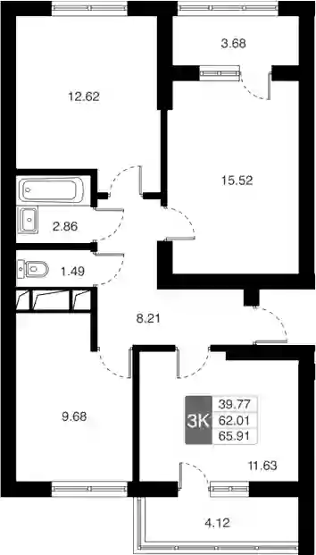 16 958 643 ₽3-к.квартира, 62.01 м², 20 эт.