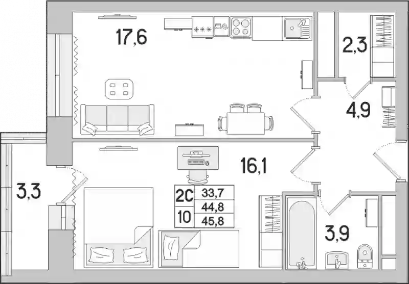 8 793 600 ₽2-к.квартира, 44.9 м², 17 эт.