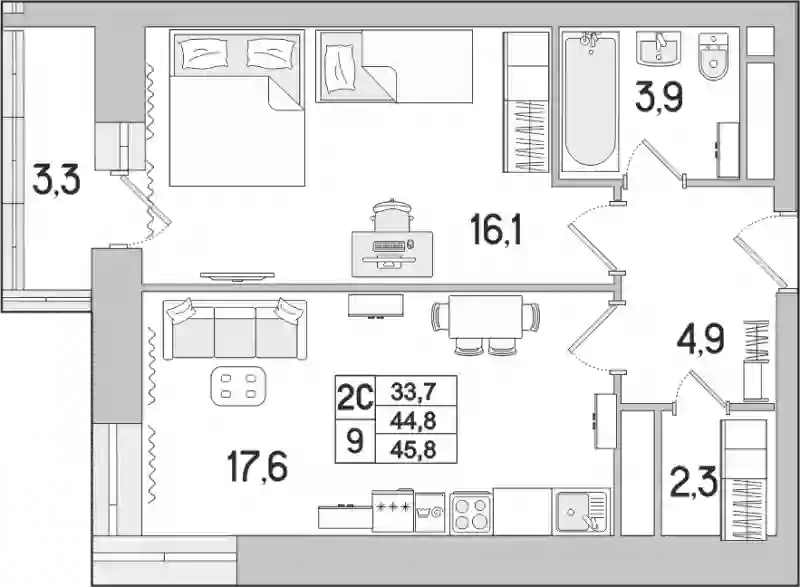 8 793 600 ₽2-к.квартира, 44.9 м², 17 эт.