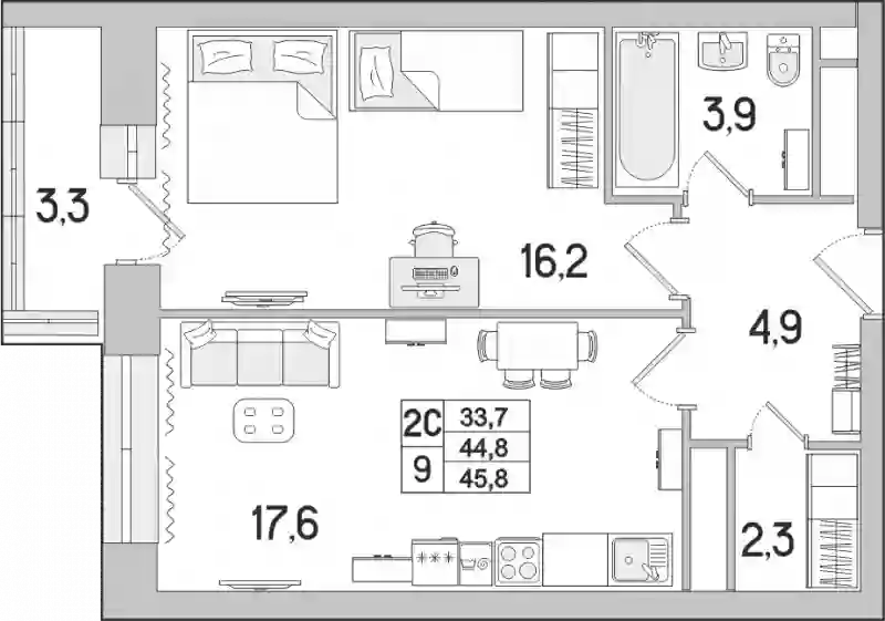 8 793 600 ₽2-к.квартира, 44.9 м², 17 эт.