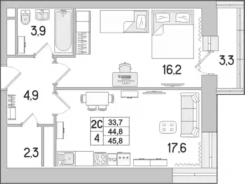 8 862 300 ₽2-к.квартира, 44.9 м², 14 эт.