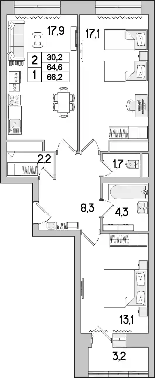 13 213 600 ₽2-к.квартира, 64.6 м², 17 эт.