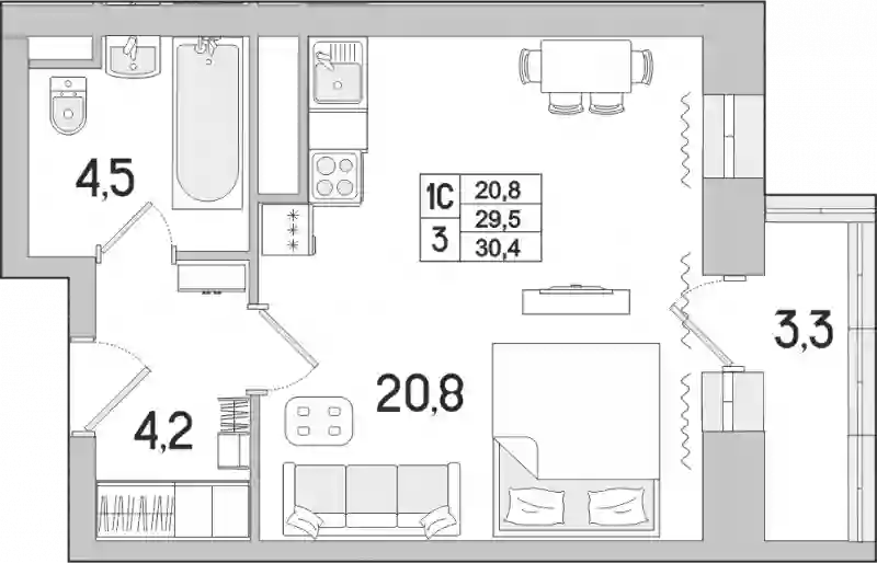 6 414 400 ₽Студия, 29.5 м², 3 эт.