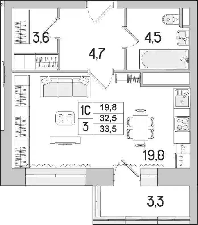 7 118 750 ₽Студия, 32.5 м², 16 эт.