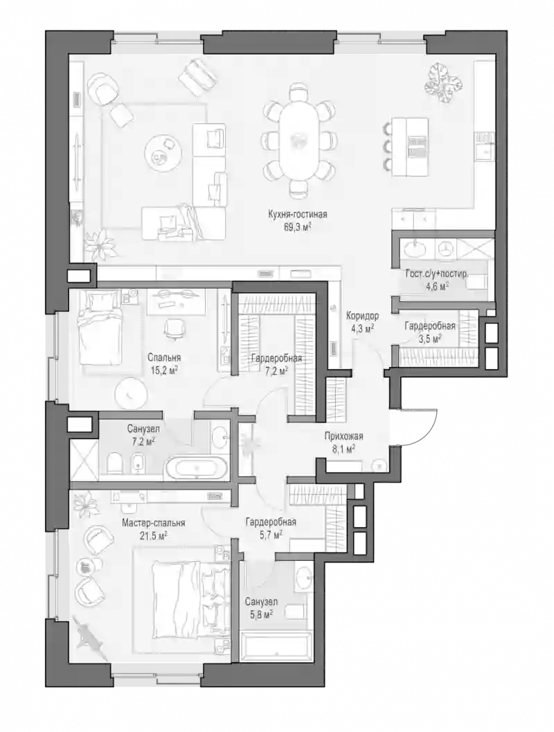 3-к.квартира, 157 м², 4 эт. в ЖК Ильинка 3/8 Корпус C
