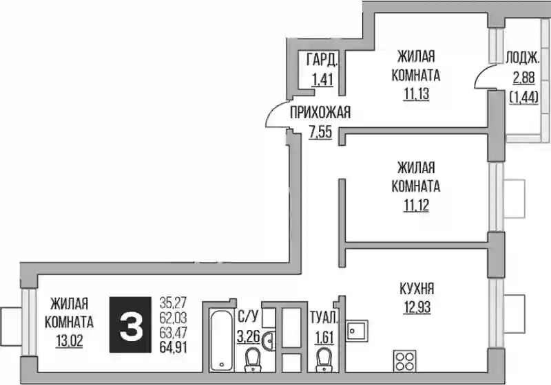 В комплексе представлены квартиры с 1–3 комнатами площадью от 21 кв. м. Также доступны европланировки с кухней-гостинной. В некоторых квартирах спроектированы гардеробные. Во всех помещениях установлены стандартные окна. Высота потолков составляет 2,8 м. Квартиры передаются без стен или с чистовой отделкой.