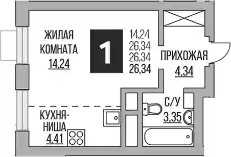 Студия, 26.34 м², 18 эт. в ЖК Ильинойс Корпус 3