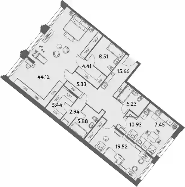 40 443 193 ₽4-к.квартира, 125.6 м², 12 эт.