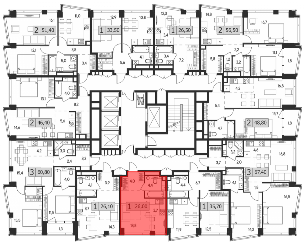 В проекте представлено множество планировочных решений — от студий до просторных 3х-комнатных квартир. Все лоты сдаются с подчистовой отделкой, высотой потолков до 3,5 метров и панорамными окнами.