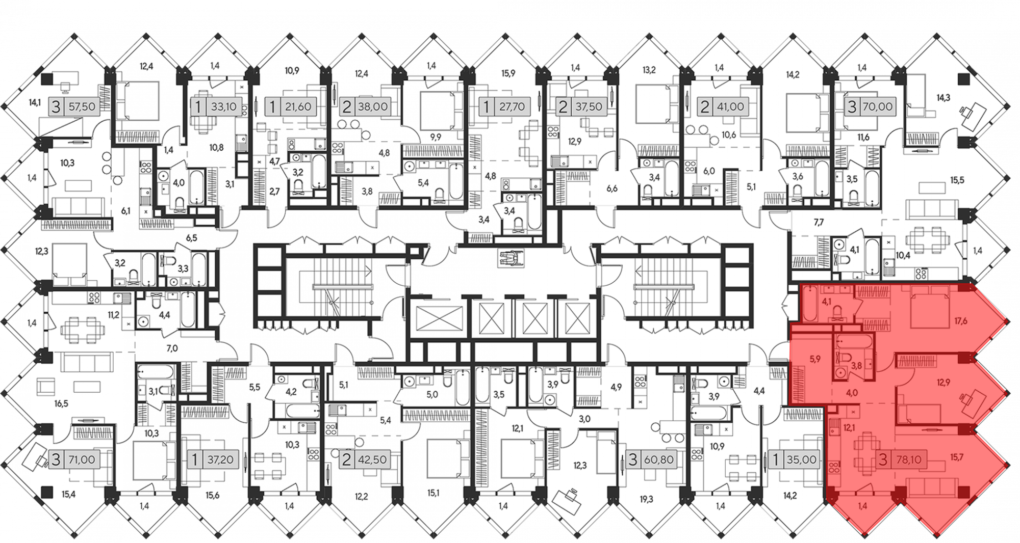 В проекте представлено множество планировочных решений — от студий до просторных 3х-комнатных квартир. Все лоты сдаются с подчистовой отделкой, высотой потолков до 3,5 метров и панорамными окнами.