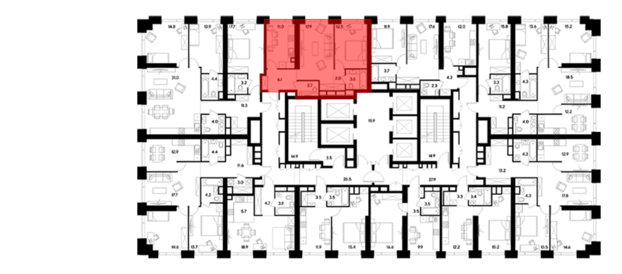 В проекте представлено множество планировочных решений — от студий до просторных 3х-комнатных квартир. Все лоты сдаются с подчистовой отделкой, высотой потолков до 3,5 метров и панорамными окнами.
