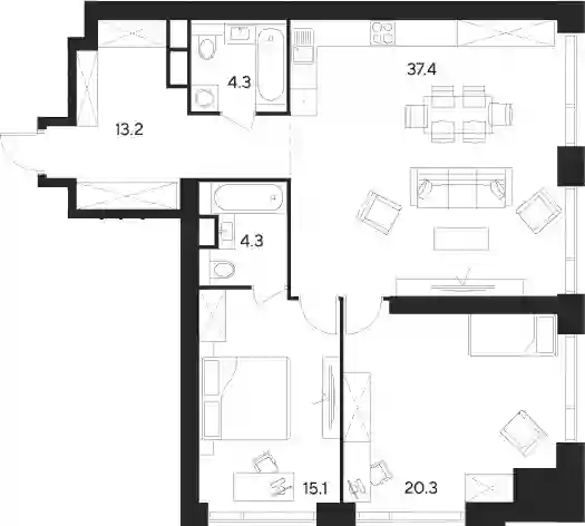 3-к.квартира, 94.6 м², 8 эт. в ЖК Indy Towers Корпус D1