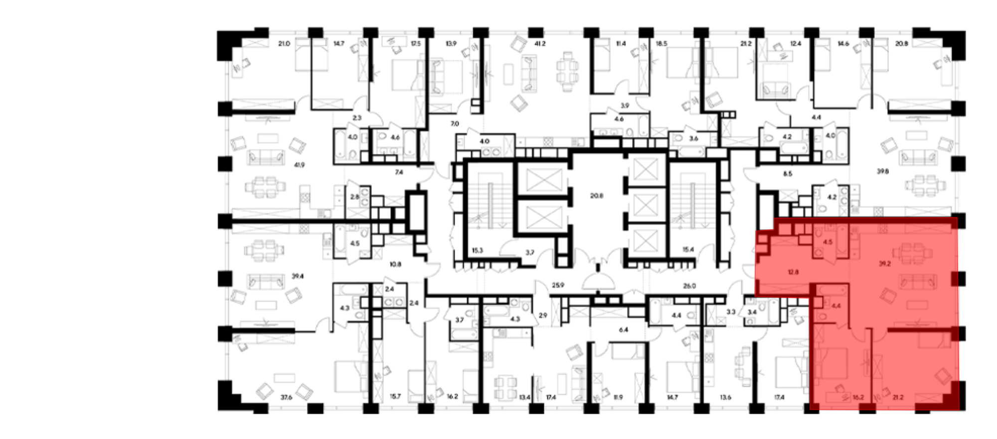 В проекте представлено множество планировочных решений — от студий до просторных 3х-комнатных квартир. Все лоты сдаются с подчистовой отделкой, высотой потолков до 3,5 метров и панорамными окнами.